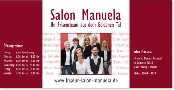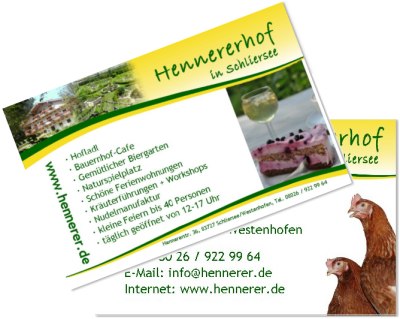 Aber nicht nur Webseitengestaltung gehört zu meinen Aufgaben. Ich übernehme für Sie auch die Entwicklung von Logos und CIs, die Gestaltung von Visitenkarten, Briefpapier, Flyern, Anzeigen, Gutscheinen, Schilder, etc.